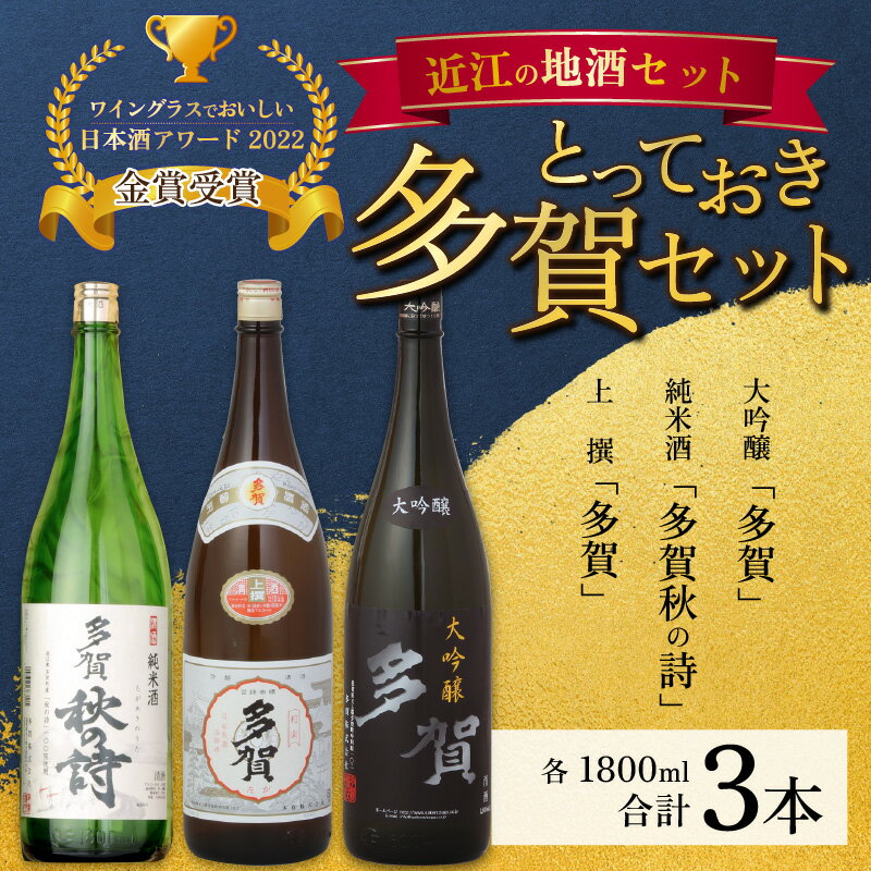 大吟醸「多賀」+ 純米酒「多賀秋の詩」+ 上撰「多賀」をセットとしました。
