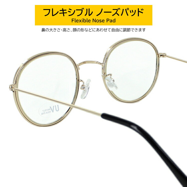 伊達メガネ メンズ レディース おしゃれ だてめがね 伊達眼鏡 PY6500 UVカット 軽量 ラウンド 丸メガネ クリングス鼻パッド メタルフレーム 調整可能 ゴールド/ブラック七宝/アンティークゴールド/ブラウンデミ七宝/モカ七宝 クリアレンズ 定形外郵便送料無料