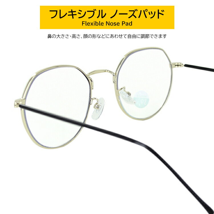 【ブルーライトカット だてメガネ】 PY6498◇ブルーライトカット率 約39%※旧・英国規格(BS 2724:1987)に基づく◇フレキシブル ノーズパッド鼻の大きさ・高さ、顔の形などにあわせて、クリングスを自由に調節できます。