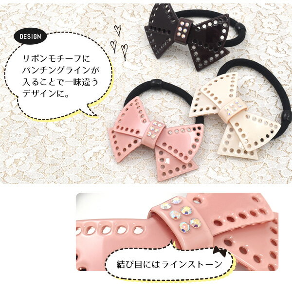 ★10%OFF★メール便送料無料【 ヘアゴム パンチングラインリボン 】 ラインストーン 大人 立体 髪ゴム 髪飾り ヘアアクセサリー レディース 女性 ロング 上品 かわいい おしゃれ ビジネス フォーマル デイリー オフィス ヘアアレ 値引き SS スーパーセール