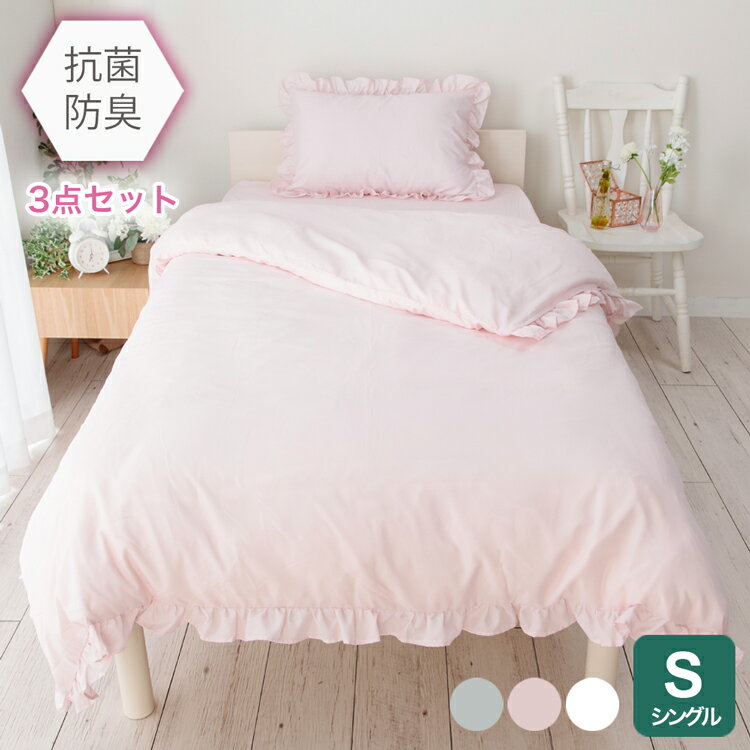 布団カバー 3点セット シングル 可愛い おしゃれ フリル付き 洗える 抗菌防臭 シーツ ベッド 掛け布団カバー 掛布団カバー ボックスシーツ 枕カバー まくらカバー かわいい 丸洗いOK 布団カバー(代引不可)【ポイント10倍】【送料無料】