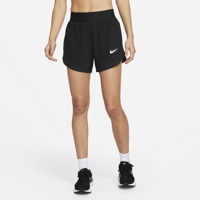 NIKE(ナイキ) ウィメンズ スウッシュ ラン ランニングショートパンツ インナー付 M (010)ブラック×(ホワイト) NJP-DD6832-010