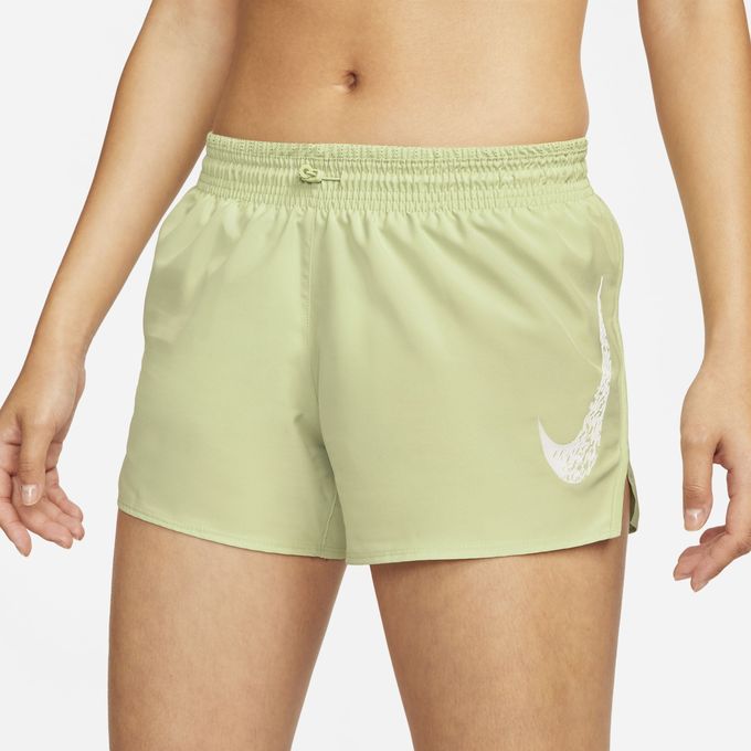 ナイキウィメンズDFスウッシュランショートランニング中にスウッシュをアピール。