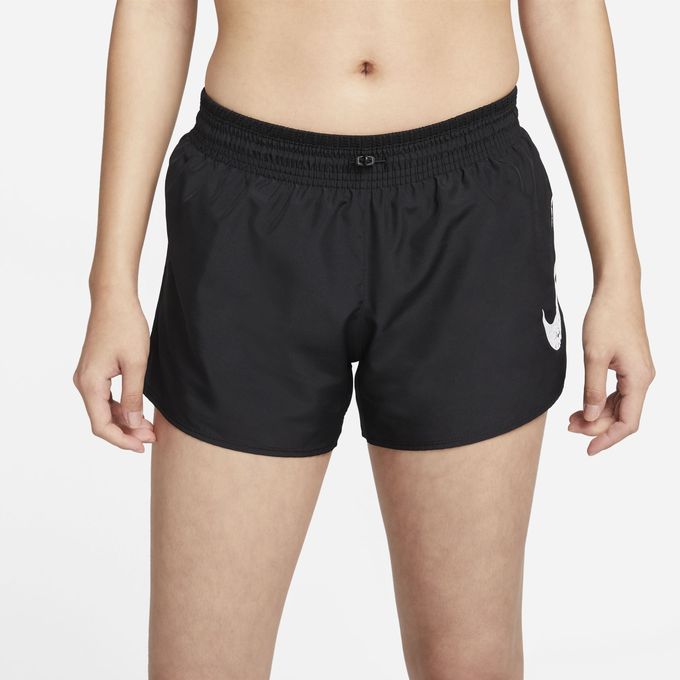 ナイキウィメンズDFスウッシュランショートランニング中にスウッシュをアピール。